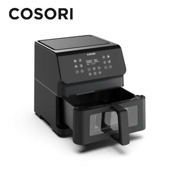 • 6.5-Quart Large Capacity: Same footprint but larger capacity than COSORI Pro II air fryers, cook more delicious meals in one go, perfect for family dinners or gatherings.Visualize Deliciousness: Watch your dishes transform with every sizzle through our viewing window and light, without drawing the basket.12 Easy Functions: Steak, Chicken, Seafood, Shrimp, Bacon, Frozen Foods, French Fries, Vegetables, Toast, Bake, Preheat, and Keep Warm. Cook your favorite meals at the touch of a button, with no hassle.