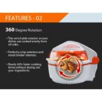 – 360 degree rotation: Perfectly crisps exteriors and moist tender interiors. Nearly 60% faster cooking time