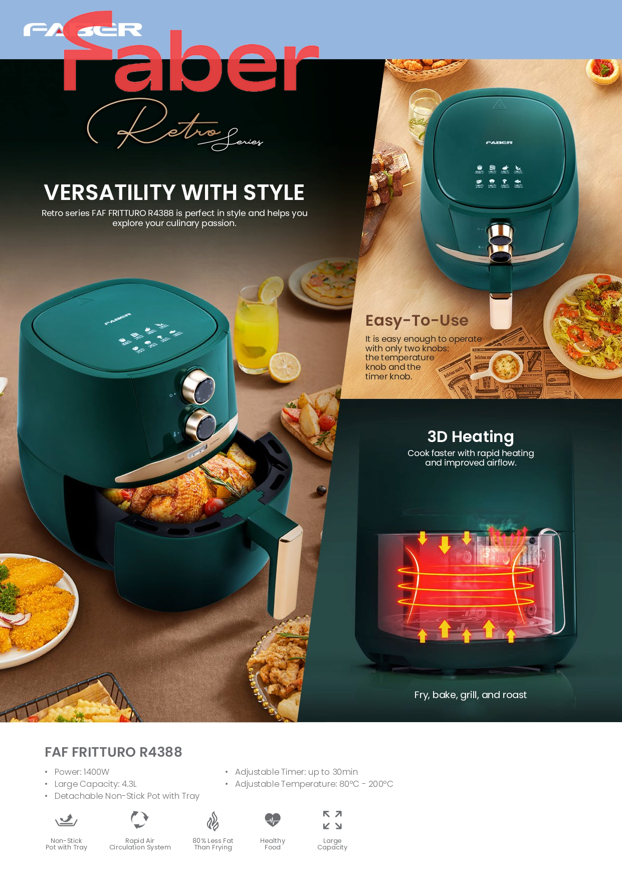 Capacity: 4.3L, Non-Stick Coated Basket & Plate