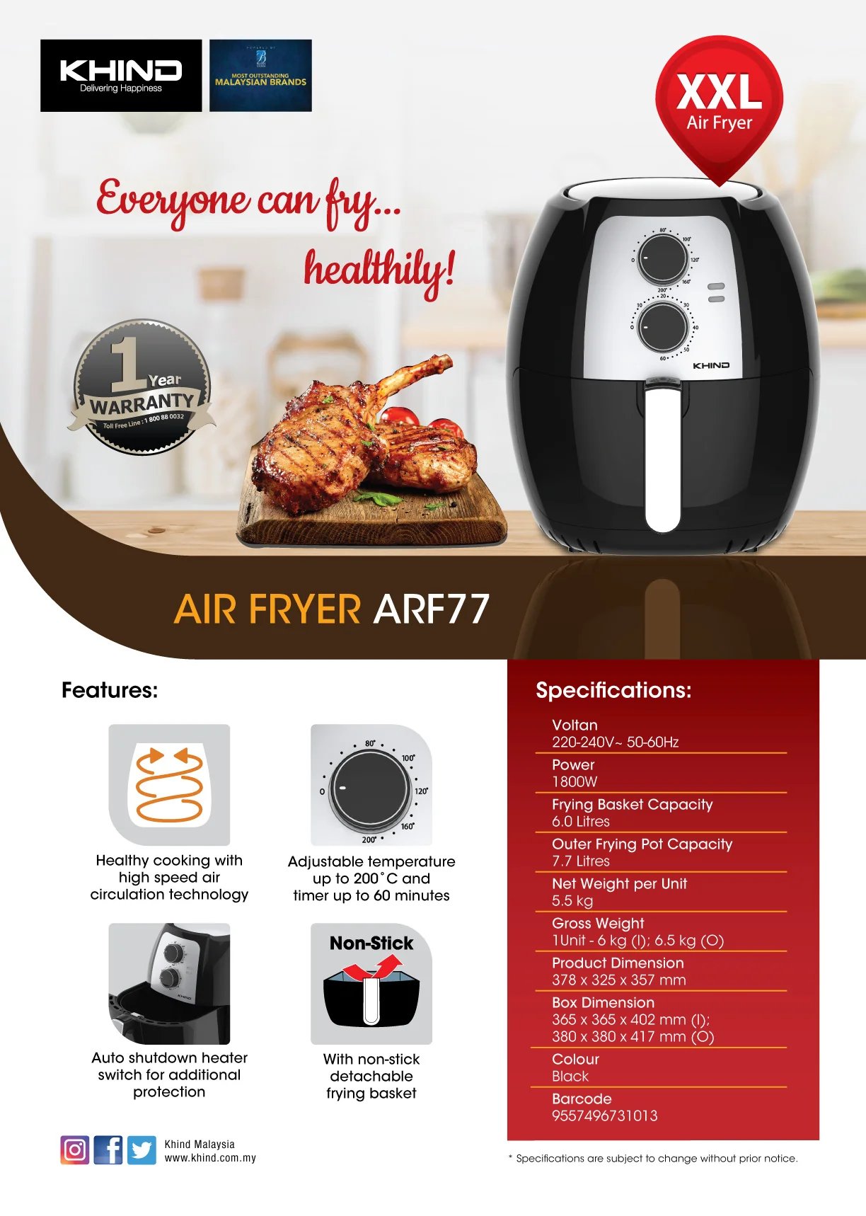 Capacity Frying Basket Capacity: 6L; Outer Frying Pot Capacity: 7.7L; Cake Basket Capacity: 6.6L