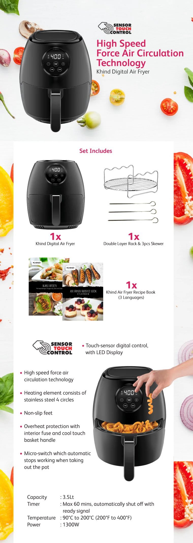 KHIND Digital Air Fryer 3.5L ARF3500D