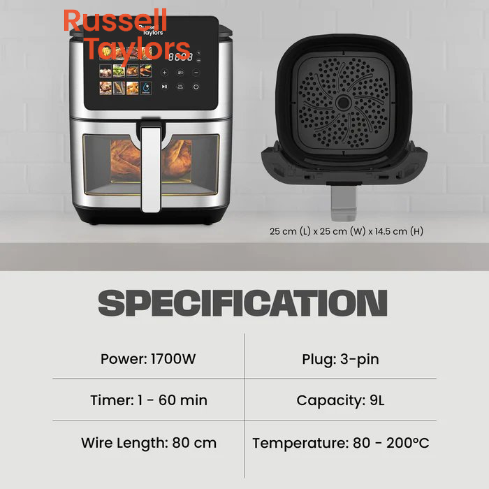 Russell Taylors 3D Visible Window Digital Air Fryer XXL 9L Z9