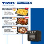 Trio Air Healthy Fryer Convection Oven is a versatile kitchen appliance offering a capacity of 25 litres for baking and toasting, and 7 litres for air frying. Experience the convenience of air frying, baking, and toasting with a single appliance that simplifies cooking tasks.