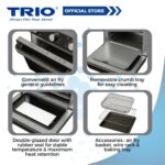 Designed for efficiency and ease, the fryer oven includes a double-glazed door with a rubber seal to maintain a stable temperature and maximize heat retention. Its rapid air technology for the air fry function and convection oven capabilities for baking deliver exceptional performance. The removable crumb tray simplifies cleanup, keeping your kitchen tidy and the appliance in top condition. With its combination of advanced features and user-friendly design, the Trio Air Healthy Fryer Oven is a valuable addition to any kitchen, enhancing your cooking versatility and convenience.
